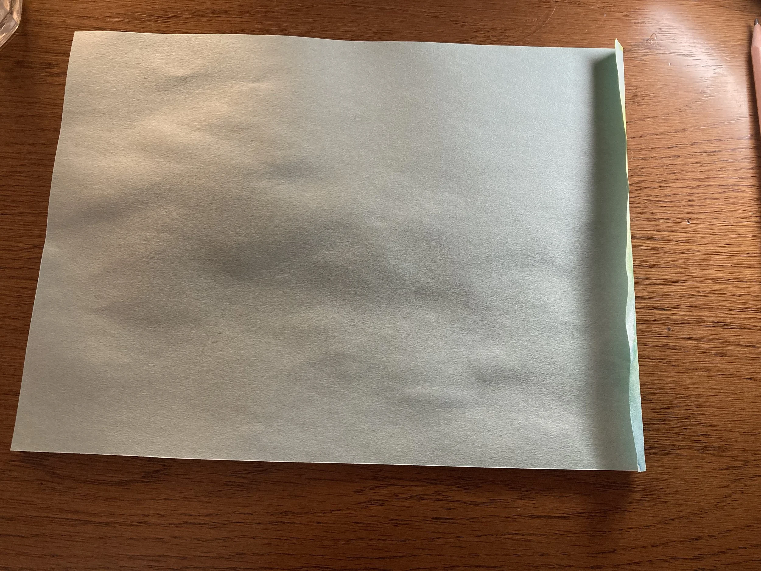色のつけ終わったペーパーを横長において、一方の横を7mmから1センチほどおります。ここが筒状にした時にノリで貼り付ける場所になります。