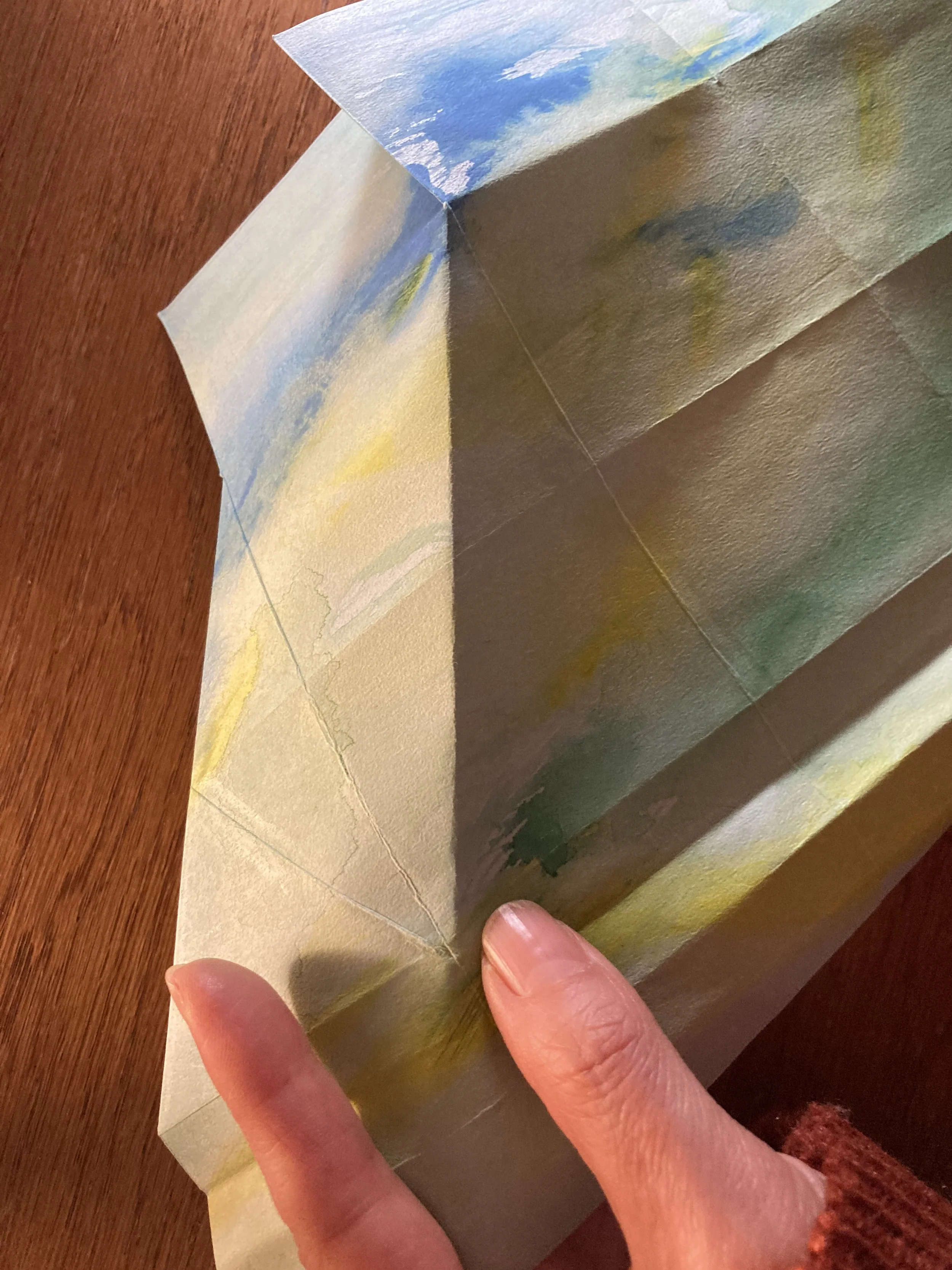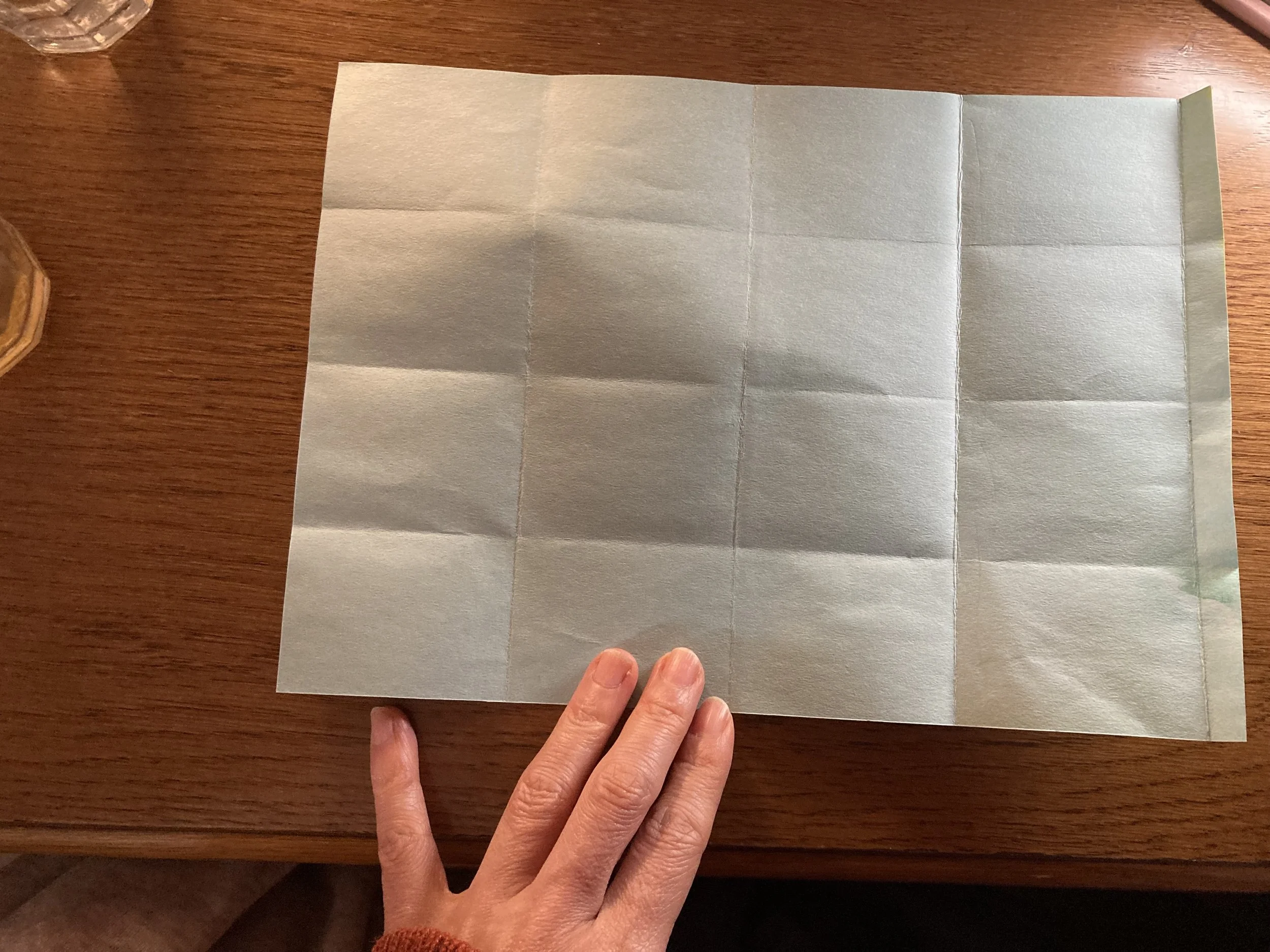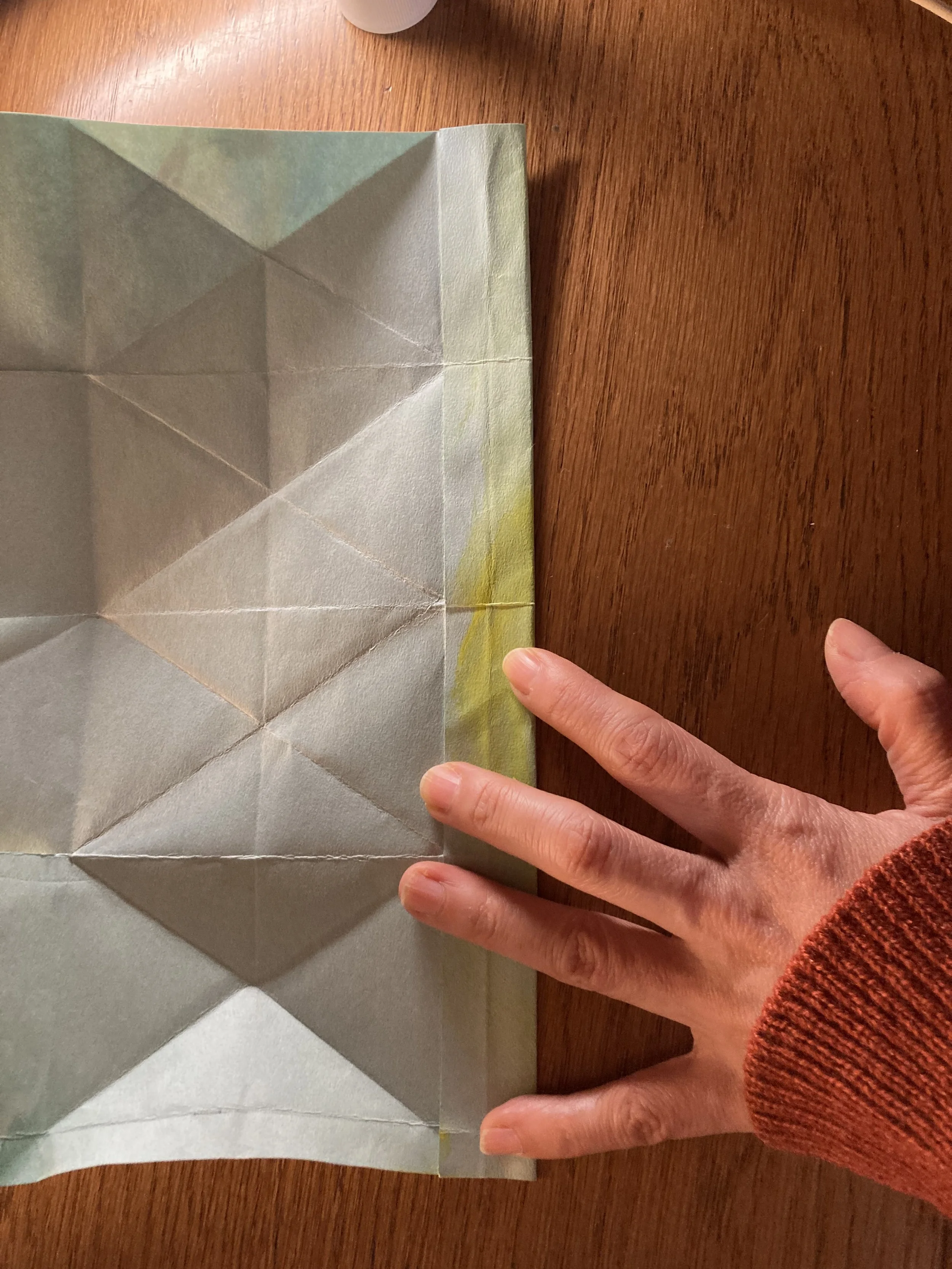 一番上の1/4は、それがまた1/4になるように折り目をつけます。