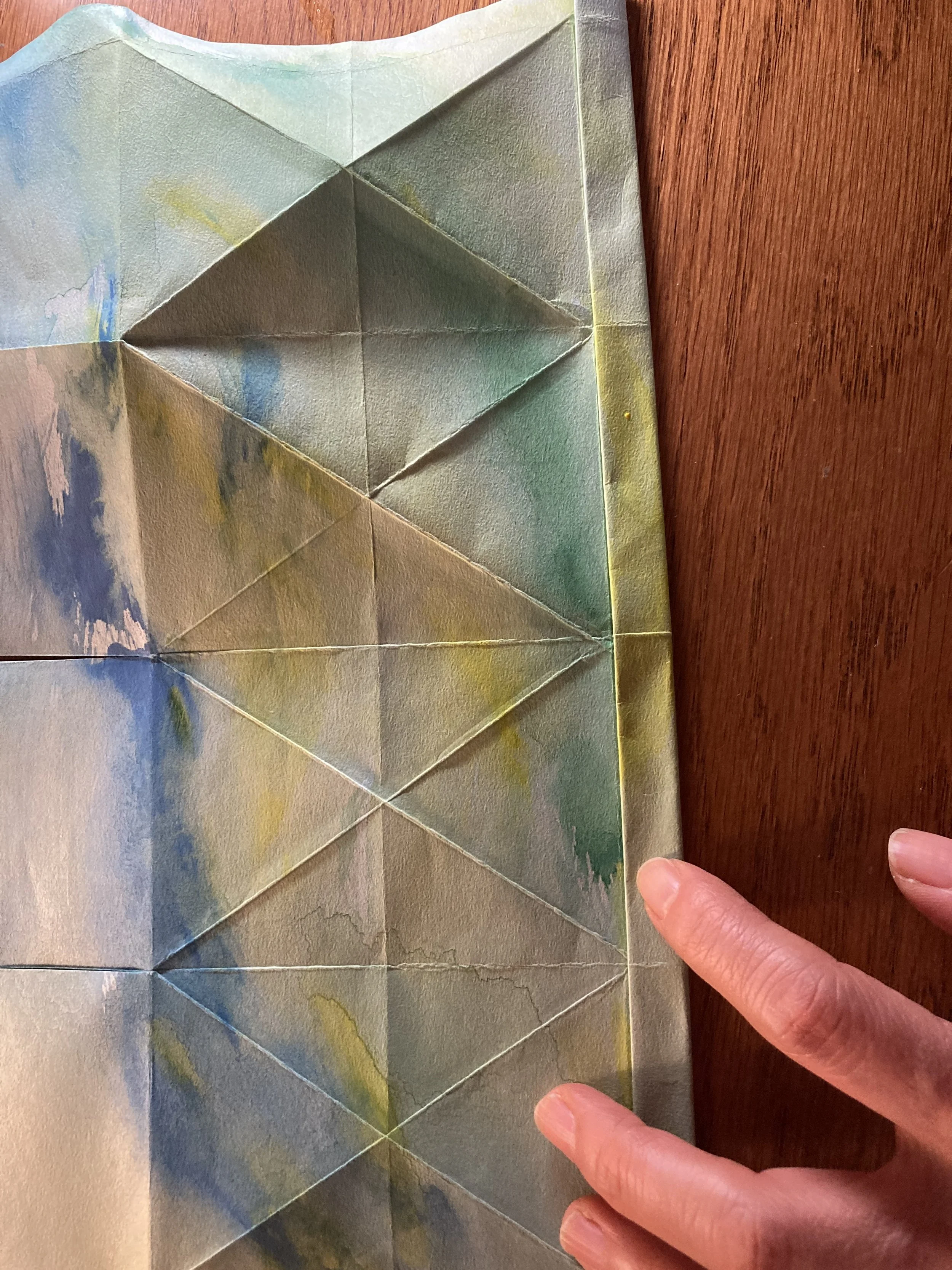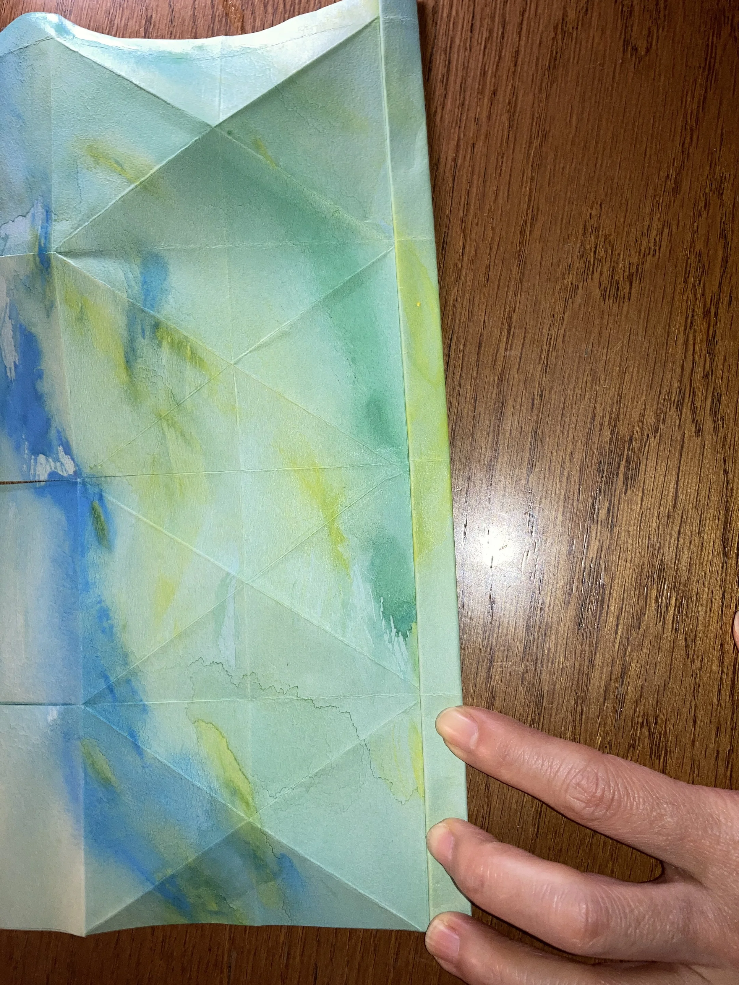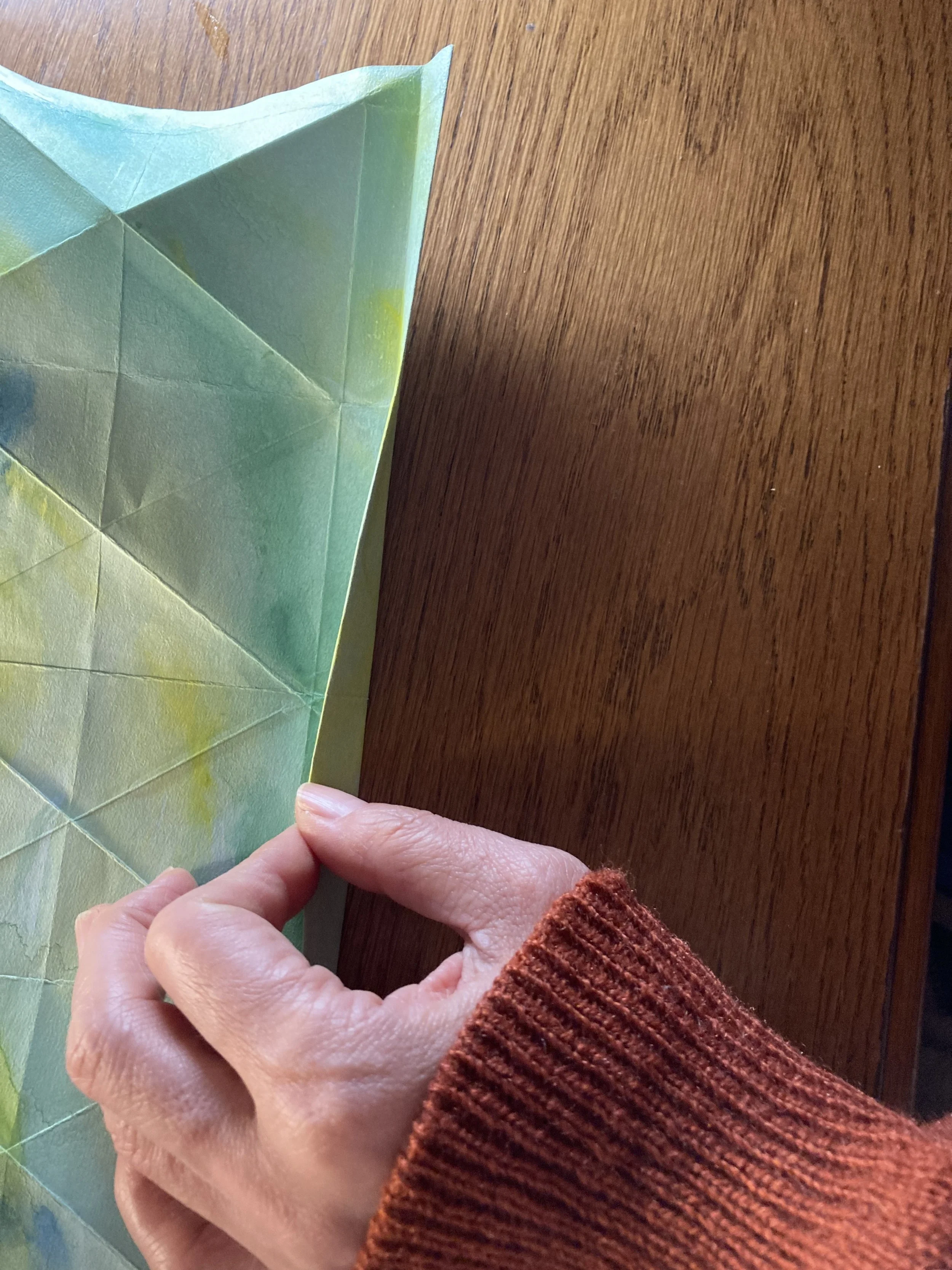 一番上の1/4は、それがまた1/4になるように折り目をつけます。
