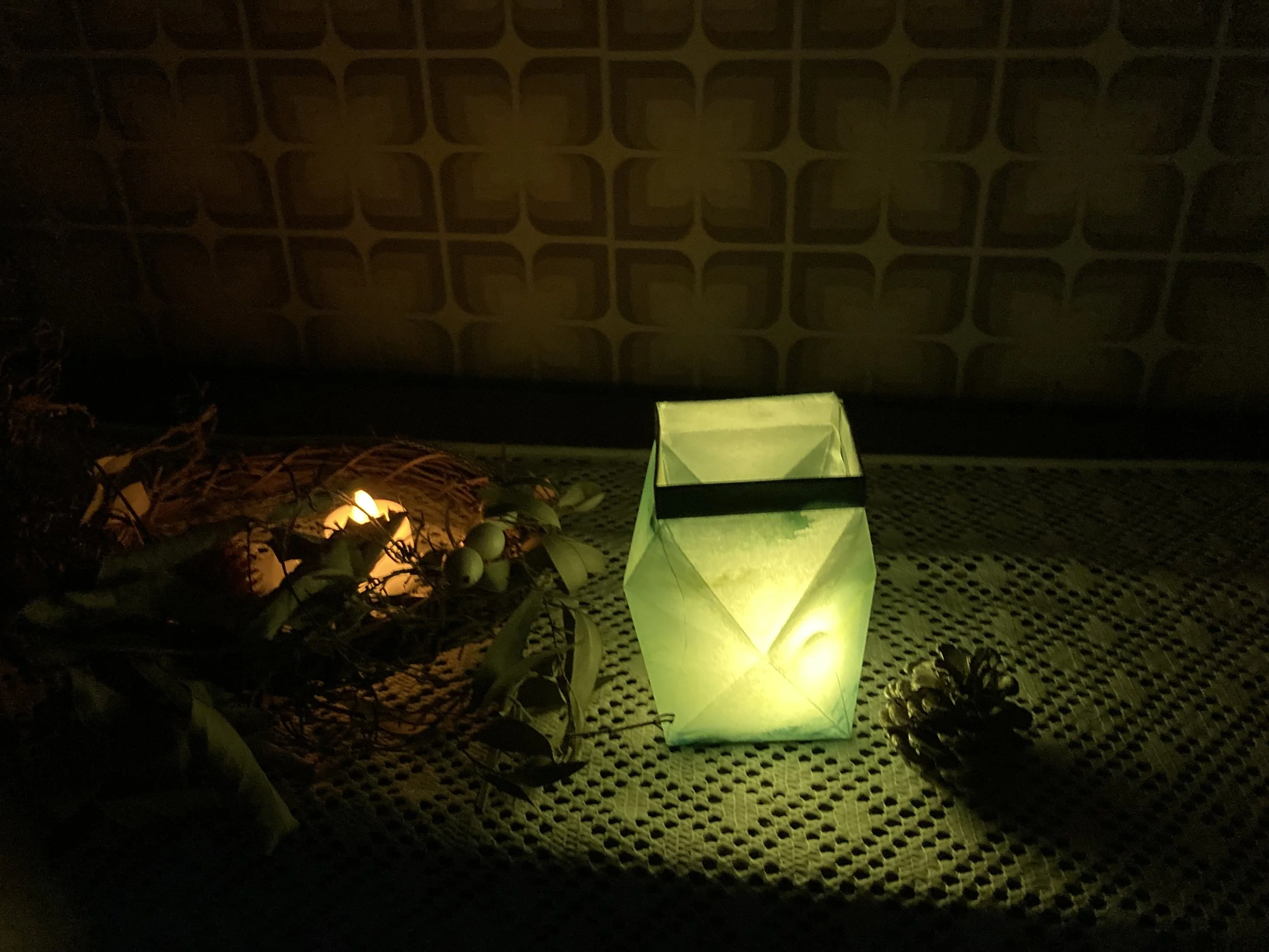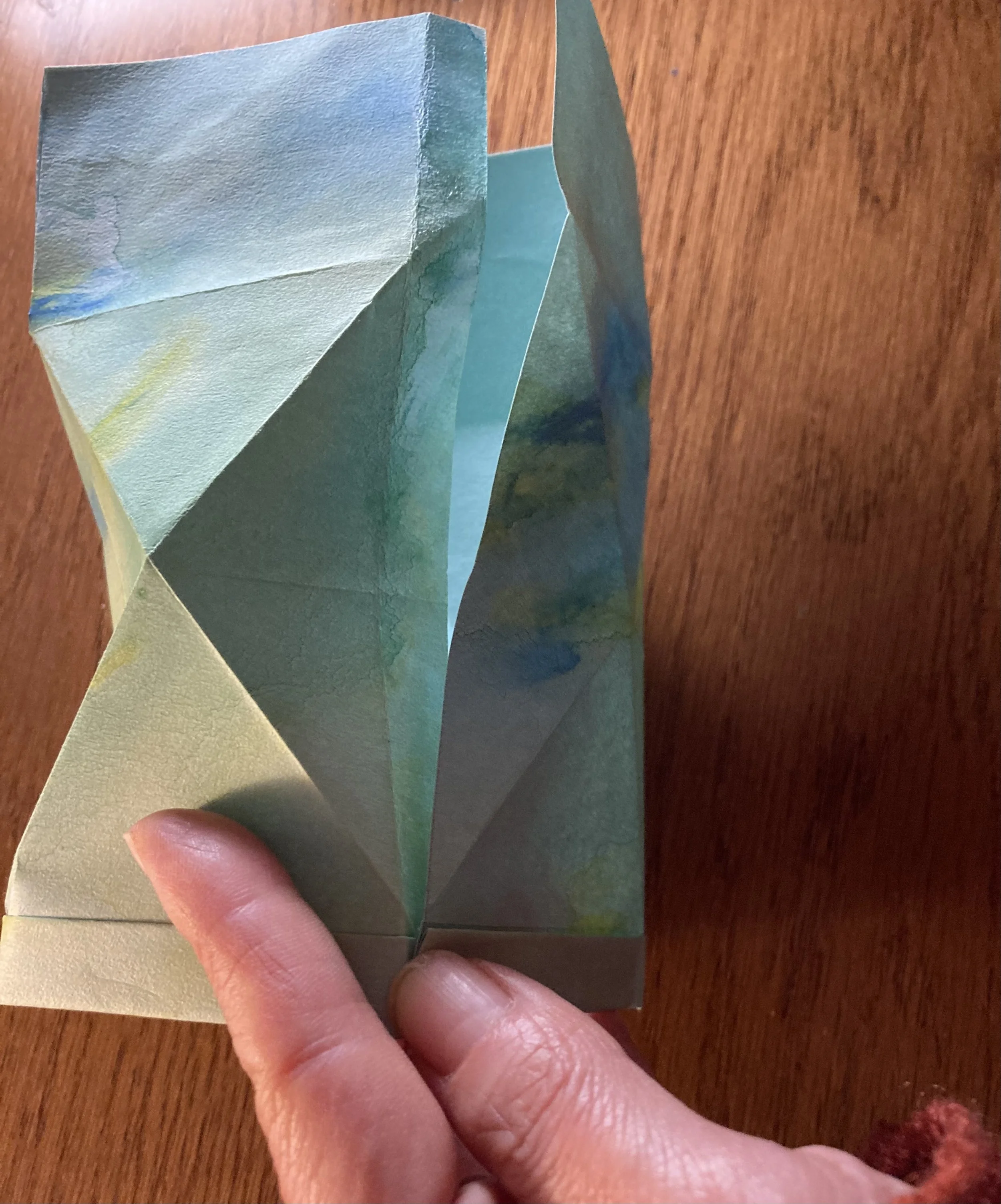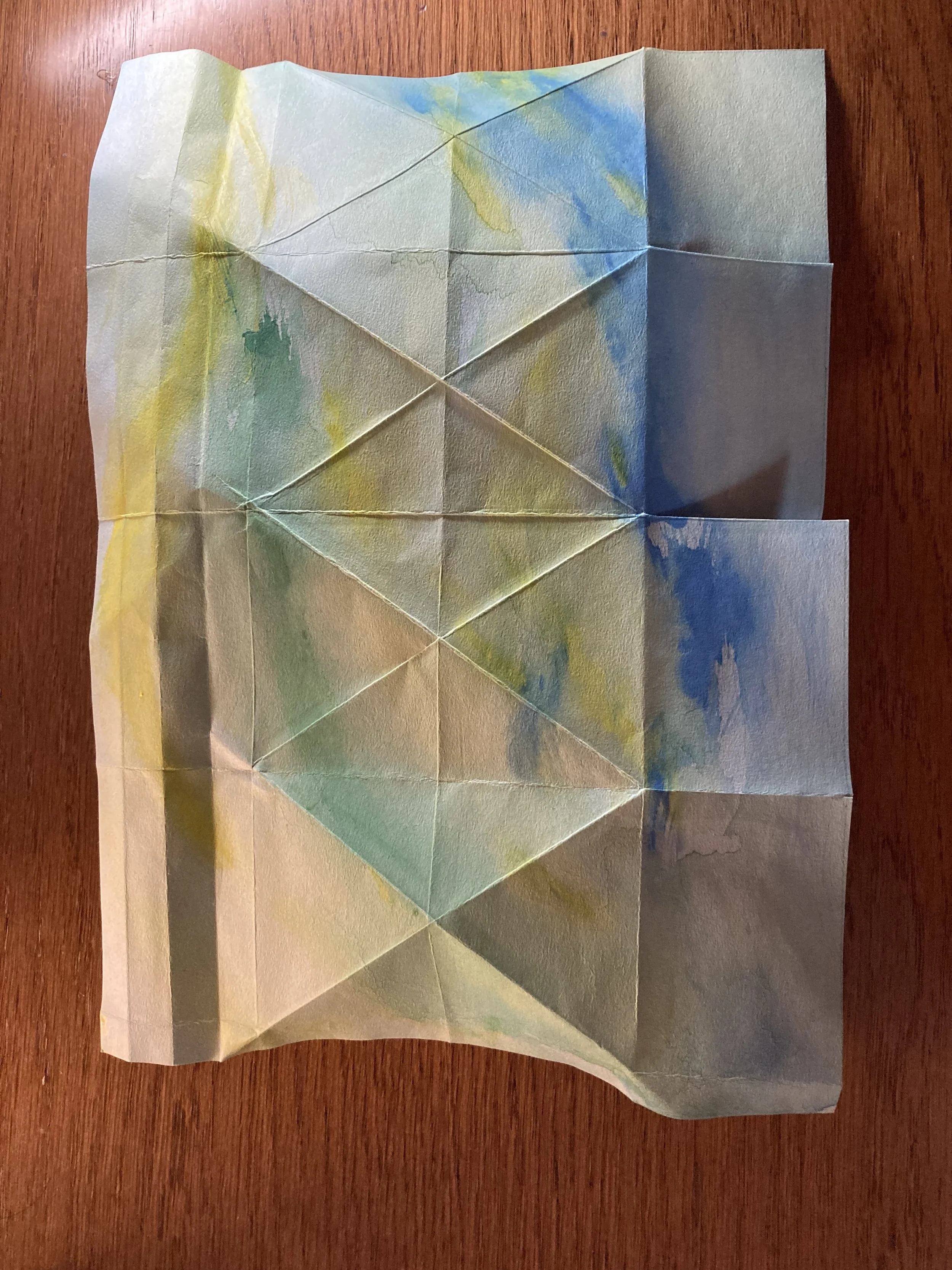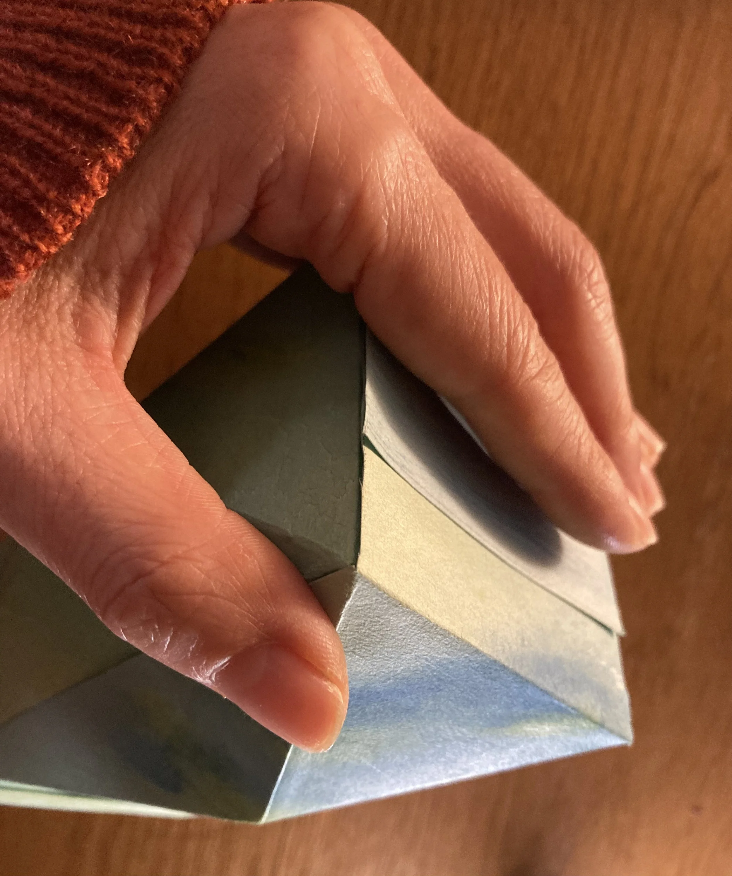 この作品は、失敗なく綺麗に折り目が入れられるかどうかで、出来上がりが変わってきます。最初に、コピー用紙などで模型を作りながら折り方のコツを掴んでおくと良いでしょう。本番と同じ大きさで練習しておくと、出来上がりの大きさをチェックできますね。
